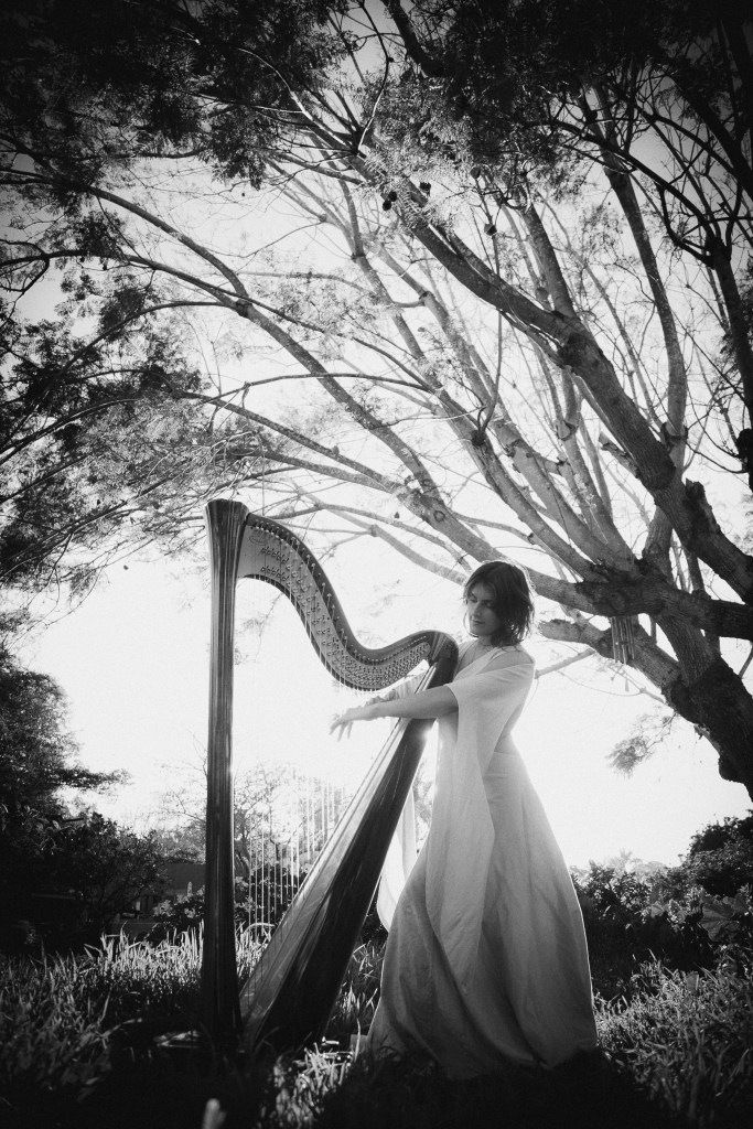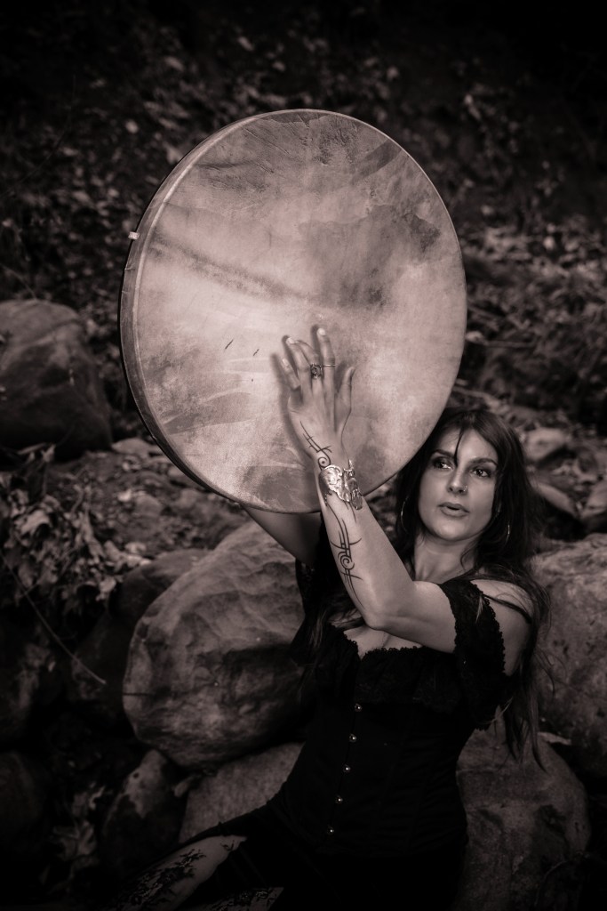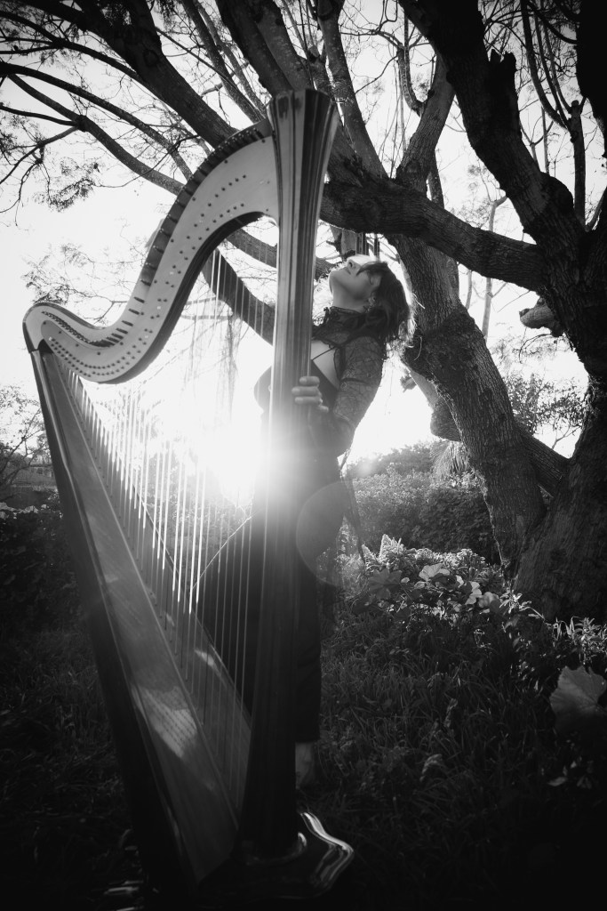 “She has an angelic and haunting voice as she plays and creates beautiful songs on the harp in a way that echoes ancient future memories of our souls. She, the embodiment of the phoenix, rises from its ashes and sings a song of deep alchemical magic.”
