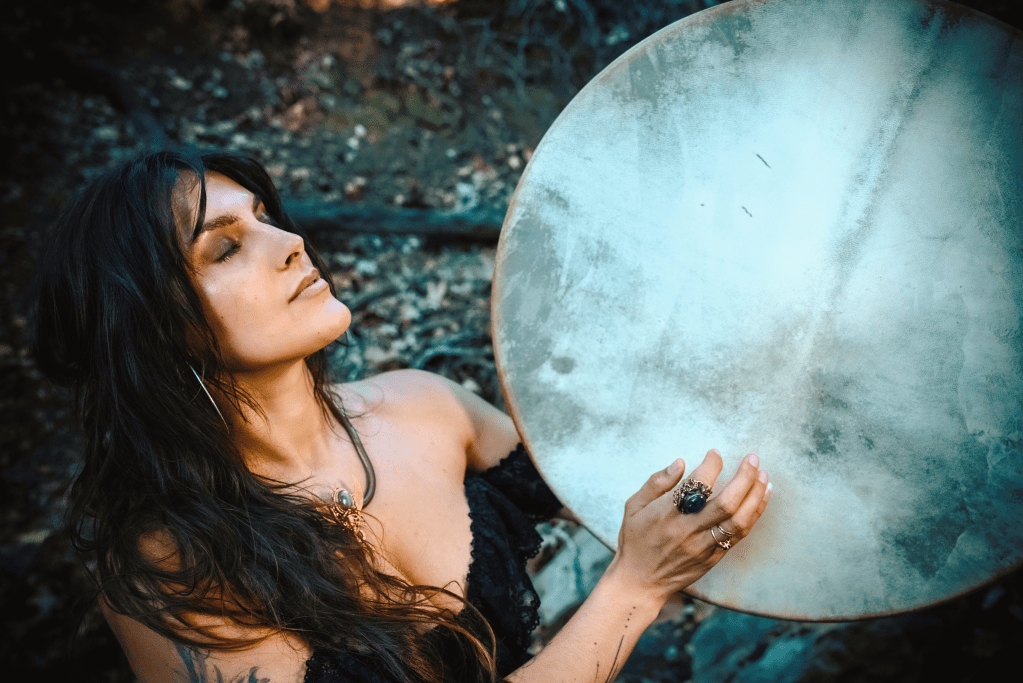 “She has an angelic and haunting voice as she plays and creates beautiful songs on the harp in a way that echoes ancient future memories of our souls. She, the embodiment of the phoenix, rises from its ashes and sings a song of deep alchemical magic.”
